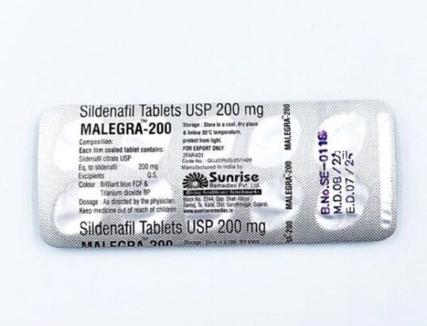 Malegra 200 — призначений для еректильної дисфункції (ЕД) у чоловіків. Основною діючою речовиною є силденафіл цитрат у дозуванні 200 мг, що робить його одним із найсильніших засобів для покращення ерекції. Malegra 200 допомагає підвищити кровообіг у статевому члені, що сприяє досягненню та підтриманню стійкої ерекції під час сексуальної стимуляції.